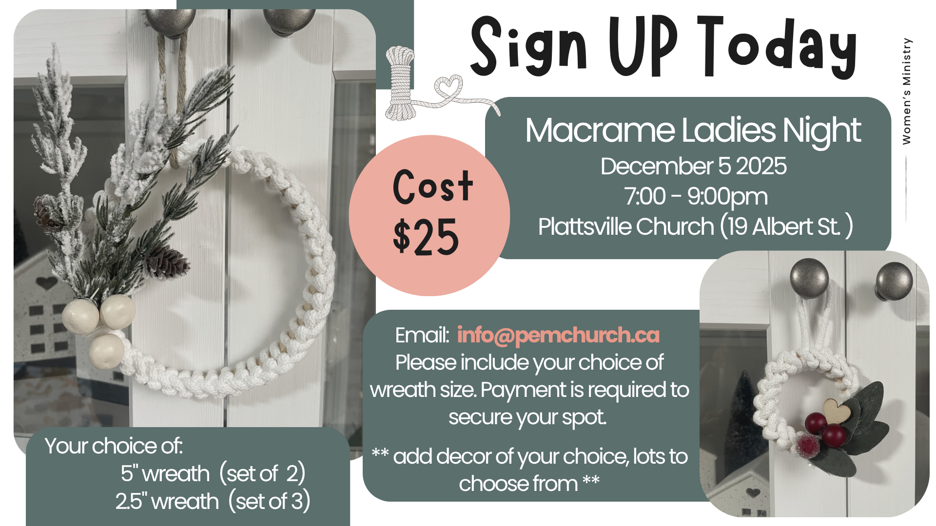 Please contact Melanie at info@pemchurch.ca to hold your spot and for payment.