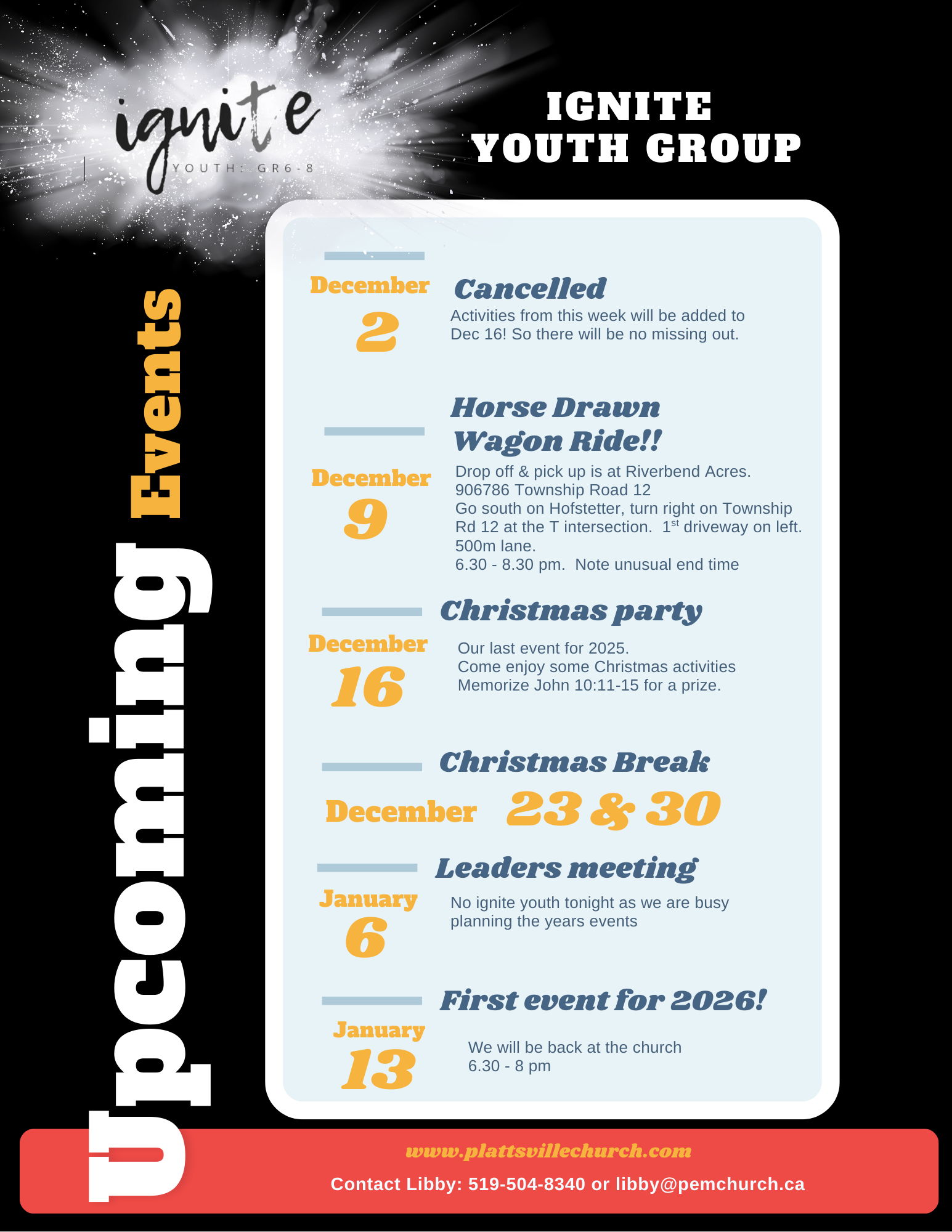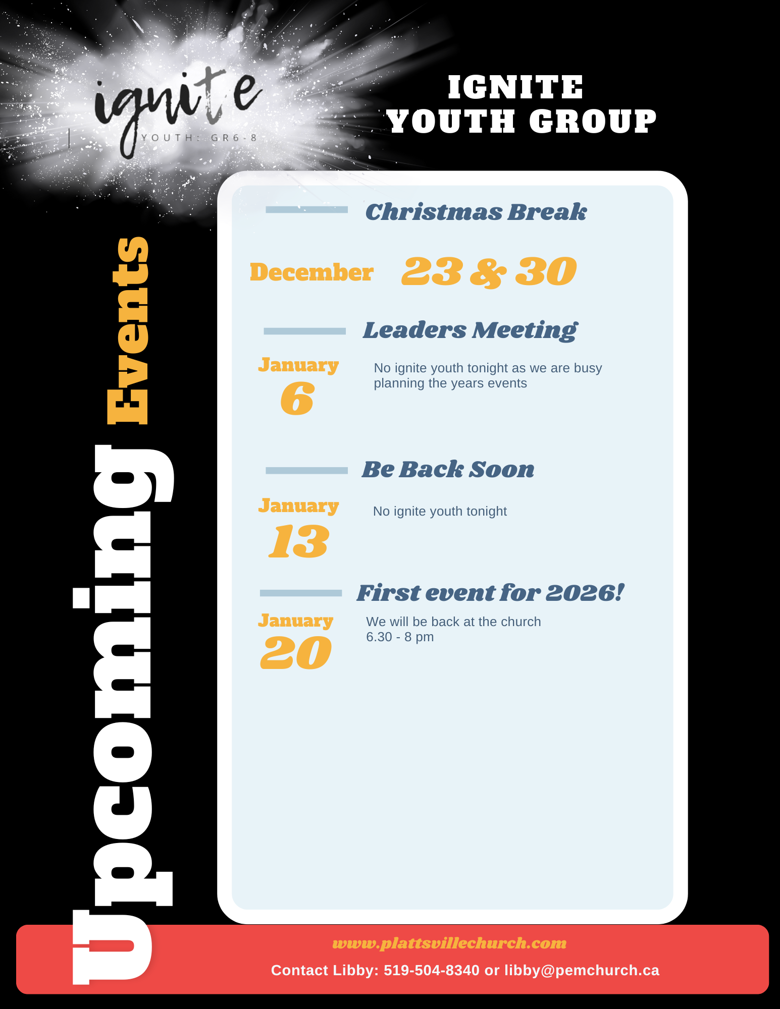 Ignite is our program aimed at the early teen years. This is the age when youth begin to discover what they are passionate about in life. It is also the age when who they are as a person can begin to ignite. We hope during this time to also ignite a love for their Creator.